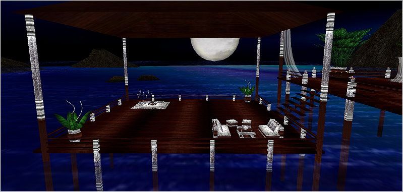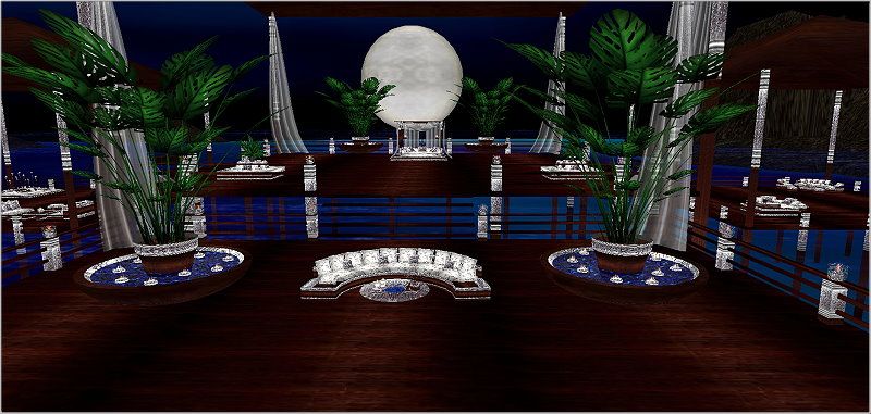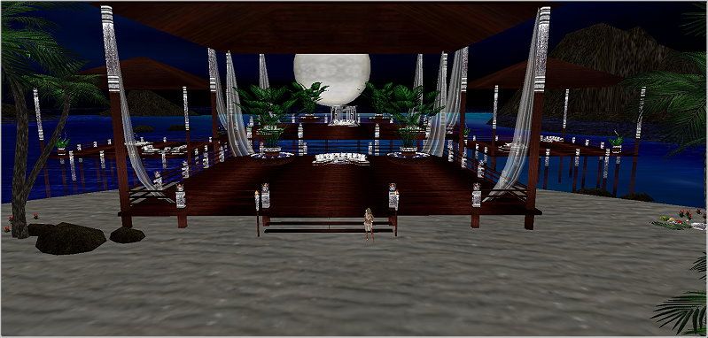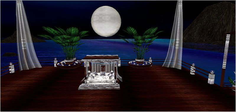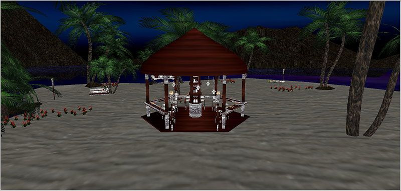Love romantic tropical nights on the beach? If so, then this Tropic Island is perfect for you. Furniture done in wood, glistening silver and white. A perfect honeymoon location or a great place for a romantic reception party after the ceremony. Whatever the occasion, you'll love this private island getaway. Please try before you buy. Thank you.