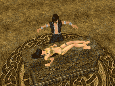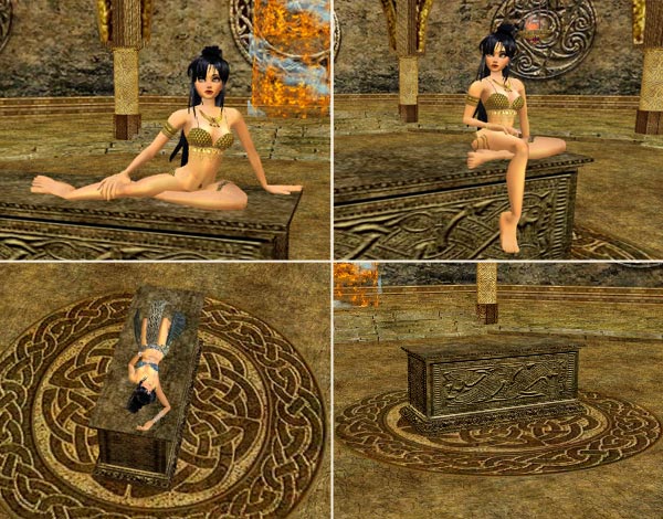 The Ritual Altar has two animated spots; one laying down and another one for the officiating avatar. It also has two sitting spots. The floor with the knotwork is included.