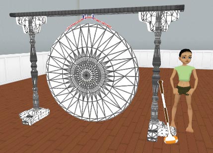 You can find the textured version here. This is an animated gong, it has two avatar spots; one for the avatar to hold the mallet and hit the gong, the other to stop the animation. You can use a tiling texture for the rope, the hooks, and the mallet. The rest of the templates can be downloaded here.