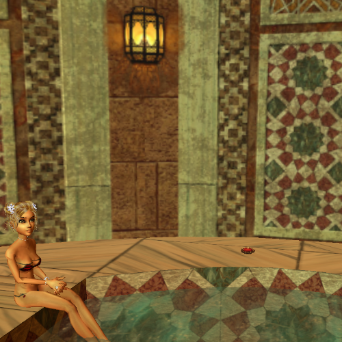 Refuel and revitalise in this traditional Hammam bath house!! Taking a bath and hanging out with friends is an old Arabian tradition to get some new energy and time for yourself. The bath house is decorated especially to recreate this old style, the bathhouse is steamy and dark to give you that special ambience! All the furniture shown in the pictures below come from my Arabian Dreams furniture line, only the wall lamps are included in the bath house. Take a look below: